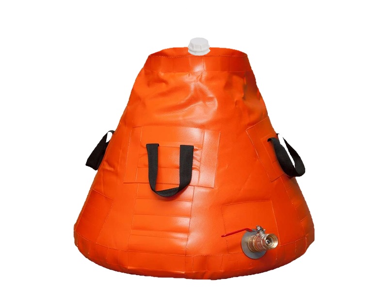 Емкости пожарные конусообразные для воды РДВ, предназначены для хранения воды в местам тушения пожаров и заправки водой ранцев противопожарных (ранцевых лесных огнетушителей). В порожнем состоянии занимают минимальный объем, доставляются к месту пожара любым видом транспорта и разворачиваются в рабочее положение в течении нескольких минут. Данный вид пожарных емкостей РДВ наиболее распространен при тушении пожаров, возможность набора воды через горловину, а также через сливной шланг. Для защиты от попадания мусора через горловину, емкость имеет застежки в верхней.